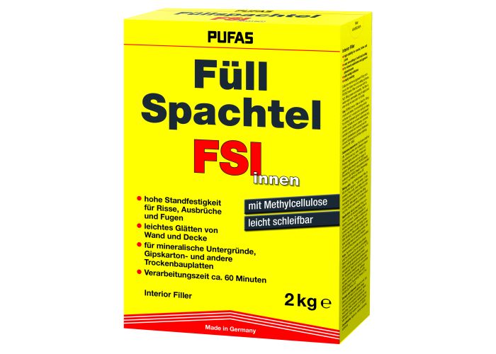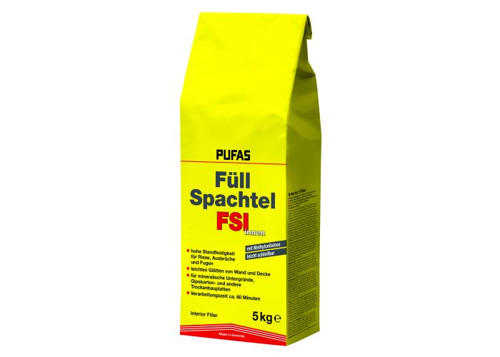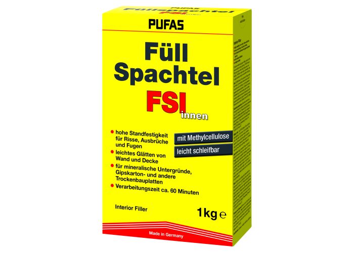 Celluloseverstärkte Gipsspachtelmasse für innen. PUFAS Füllspachtel innen ergibt glatte, spannungsfreie Un...